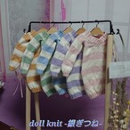 お人形さんサイズに合わせた細めでかつ柔らかくチクチク感の少ない厳選したメリノウールを、イースターの季節にピッタリなパステルカラーのニットワンピースに編み上げました!